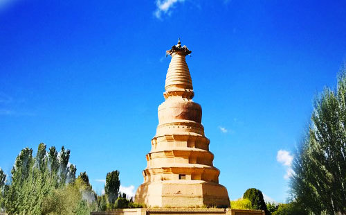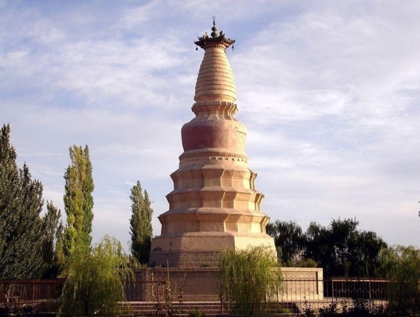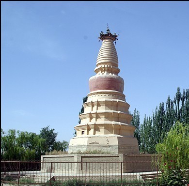 後秦/清代宗教建築──明代風格喇嘛塔──紀念龜茲高僧鳩摩羅什坐騎的甘肅敦煌[白馬塔]