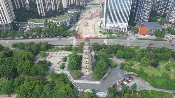 塔體輪廓自下而上逐層遞縮收分。
