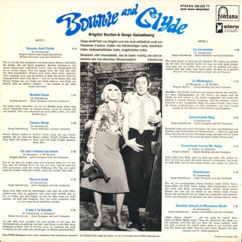 1968年1月,甘斯柏與芭杜發行合作大碟[Bonnie and Clyde](Claude Dejacques製作)時,便只收錄標題曲,未收錄[Je taime].