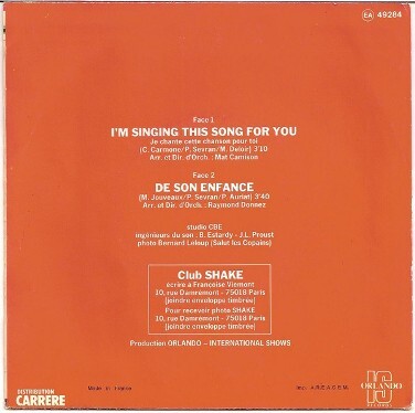 1977年, 雪克/Shake推出單曲[Im Singing This Song For You (Je Chante Cette Chanson Pour Toi)/我為你唱這首歌](Orlando唱片出版)