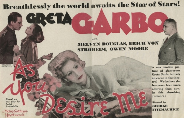 嘉寶合約最後一部電影是[As You Desire Me/正如你渴望我/如你所願].