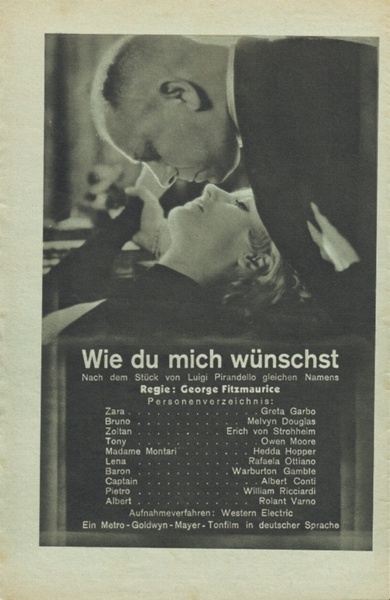 [As You Desire Me]很快就投入製作,因為嘉寶的合約即將結束,米高梅想從她身上擠出另一部電影……這一舉動讓她對片廠明顯冷淡。