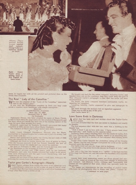 在拍攝瑪格麗特死亡場景時,勞勃泰勒把他的留聲機帶到了嘉寶的更衣室,以便她可以播放Paul Robeson的唱片,讓她心情愉悅。