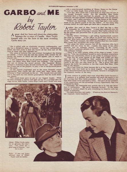 她後來說,嘉寶在死亡場景中的表現太差了,她不得不把所有台詞交給勞勃泰勒。