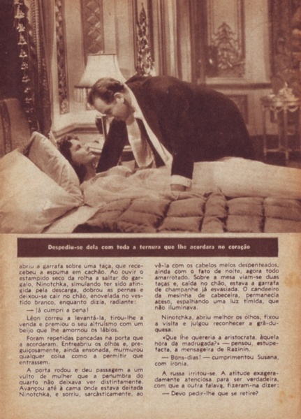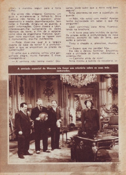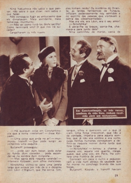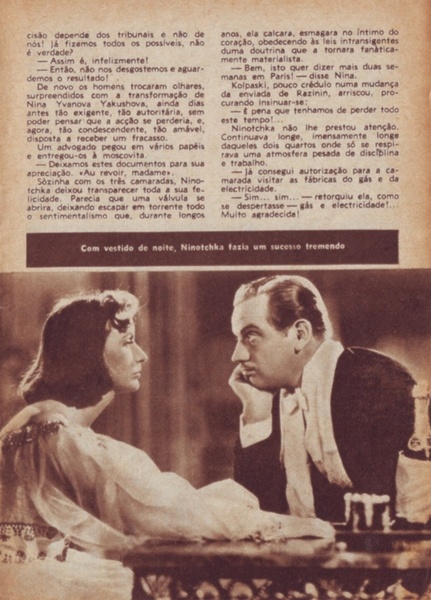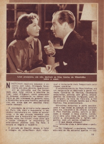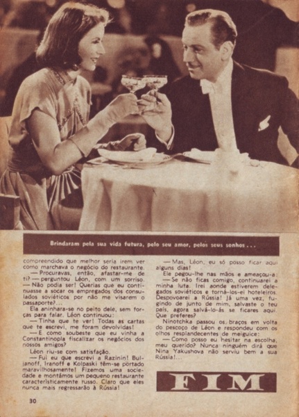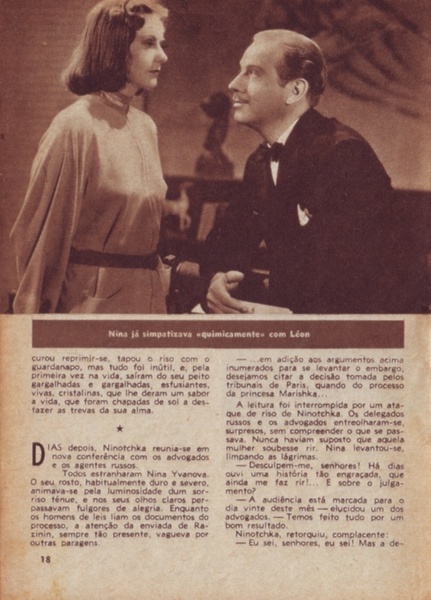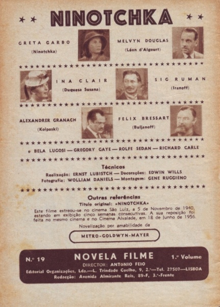 劉別謙本人對[Ninotchka]非常滿意。 「如果沒有嘉寶出演,我就不會這麼做。如果沒有嘉寶,我認為這沒有任何意義,」他說。