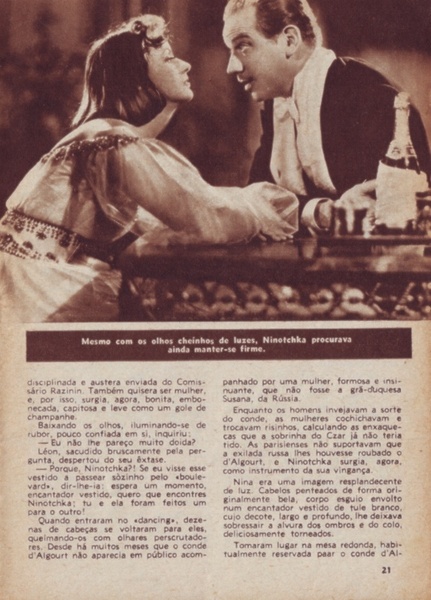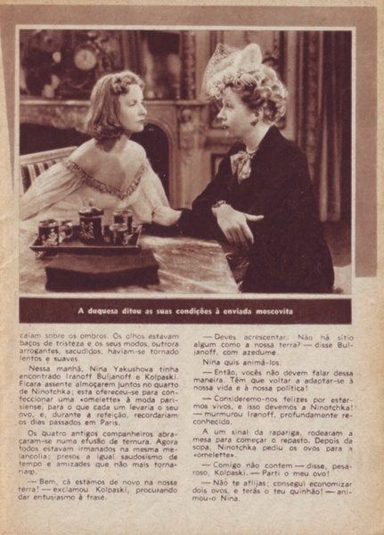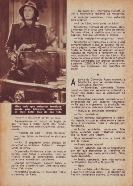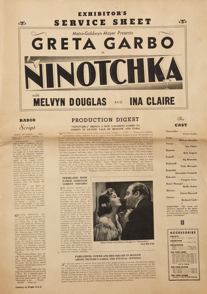 [Ninotchka]採取新的路線,看來將由威廉惠勒執導,卡萊葛倫在Ben Hecht 和 Charles MacArthur的劇本中與嘉寶演對手戲。