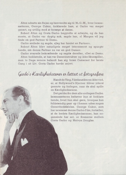 攝影師威廉·丹尼爾斯是庫克斯和嘉寶的首選。但他卻必須負責朱蒂迦倫 (Judy Garland) 新片.