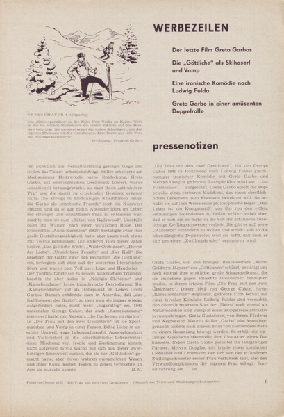 米高梅希望利用[Two-Faced Woman]將嘉寶‘美國化’,宣傳她現代而迷人的新形象,增加她對美國本土觀眾的吸引力。