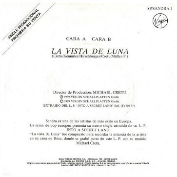 1988年秋天 26歲的德國美豔歌手珊卓拉(Sandra)發行由新婚夫婿Michael Cretu製作的第三張專輯[Into a Secret Land/進入秘地](Virgin唱片發行)