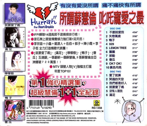 1998年1月,27歲的台灣玉女歌手蘇慧倫推出第二張國語雙片精選大碟──[失戀萬歲](滾石唱片發行)