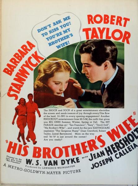 芭芭拉史坦葳和勞勃泰勒最終被選為[His Brothers Wife]的主角,這是他們合作的三部電影中的第一部。