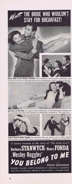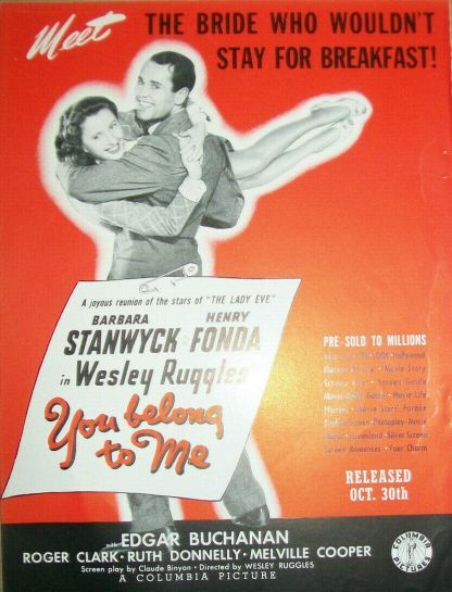 在[The Lady Eve]大獲成功後,哥倫比亞影業促成芭芭拉史坦葳、亨利方達合作另一部愛情喜劇片──[You Belong to Me/你屬於我].
