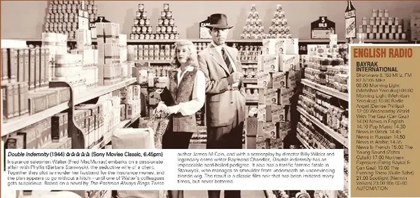 比利懷德拍攝了凱恩的故事,講述一對粗暴的情侶試圖進行“完美犯罪”,以獲取一些保險,其現實主義讓人想起過去法國電影的片段。