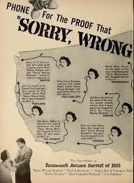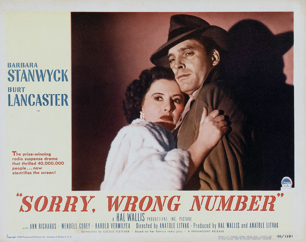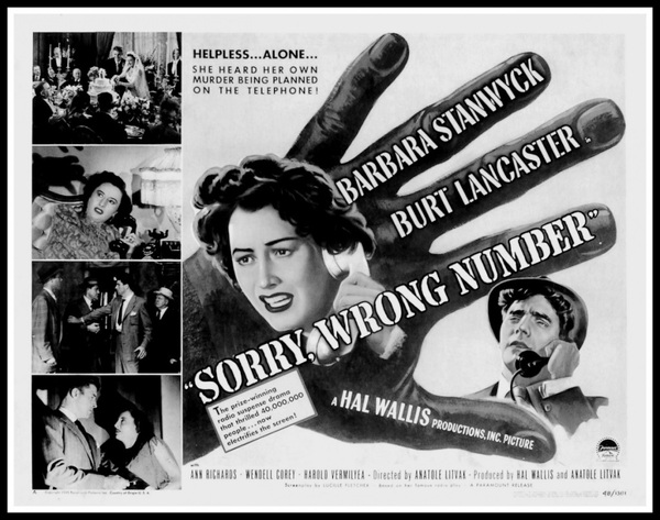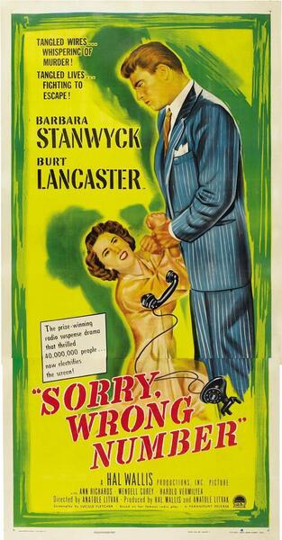 …在希區考克將浴室的衛生神聖性轉變為犯罪現場的幾年前,編劇Lucille Fletcher的[Sorry, Wrong Number]在家庭必需品上也做了類似的事情,巧妙地將像電話這樣無害的東西變成厄運的預兆,拉近人們距離的號角回應死亡的召喚。