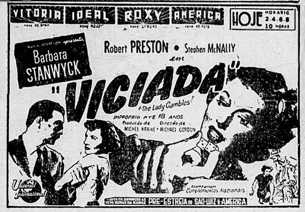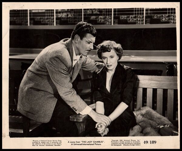 由Michael Gordon1949年環球國際影業公司出品的黑白黑色電影[The Lady Gambles]中的女主角是瓊·布斯,她的賭博成癮導致了婚姻不和,在這個演技出色但溫和且平庸的庸俗劇中,她的強迫性賭博成癮導致婚姻衝突。