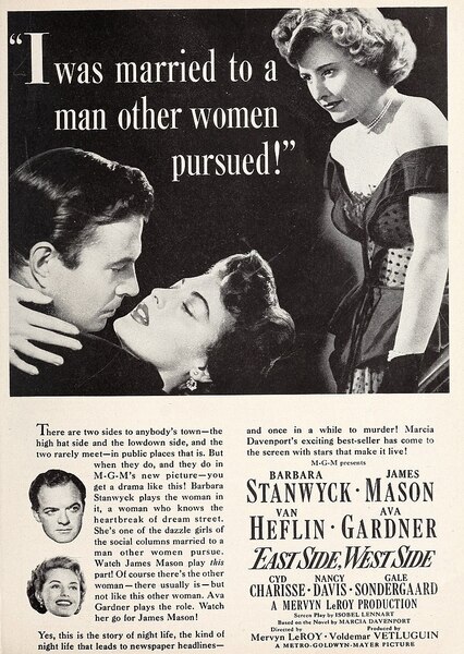 [East Side, West Side]是一部關於紐約名人之間的不忠和謀殺的肥皂劇,擁有最優秀的演員陣容和米高梅一貫的光鮮畫面和高品質製作…