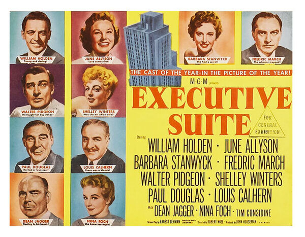 勞勃懷斯的[Executive Suite]改編自Cameron Hawley1950年代初關於企業政治和權力遊戲的小說,在過去的六十年裡幾乎沒有過時的地方……