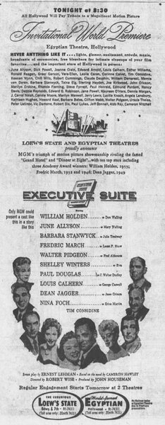 1954年,[Executive Suite]獲頒威尼斯影展評審團特別獎-表彰全體表演。