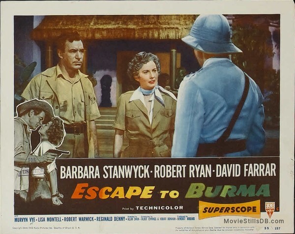 [Escape to Burma]是一部熟悉的專業製作的爛片,Dwan 強有力的前期指導提升一部看起來廉價的B 級電影製作,自然不會偏離美國,而這些年老的明星仍然可以給任何人驚驗。