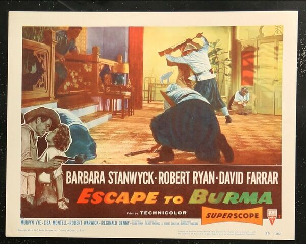 1955年4月9日上映.[Escape to Burma]的製作預算略高於200萬美元,票房收入約250萬美元。