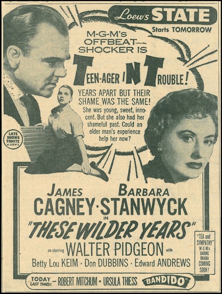 由Roy Rowland導演1956 年執導的劇情片[These Wilder Years]是偉大明星詹姆斯卡格尼和芭芭拉史坦葳唯一的搭檔,當然,他們非常受歡迎,只是遺憾的是,他們的才華稍微過了巔峰期,而且還沒有達到最佳施展才華的水平…
