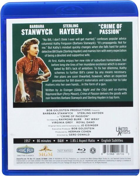 接下來是聯藝(United Artists)公司的[Crime of Passion/激情之罪/紅樓槍聲]