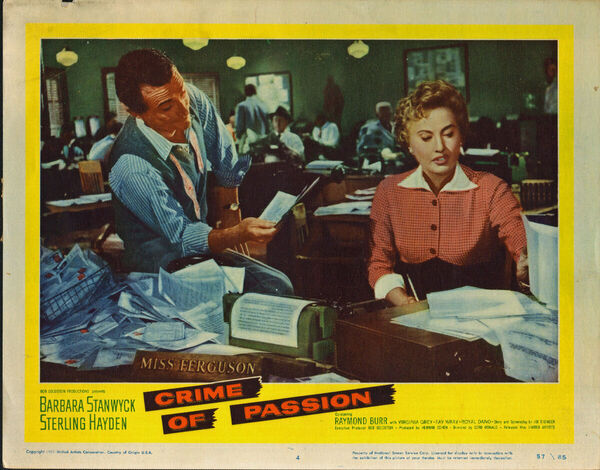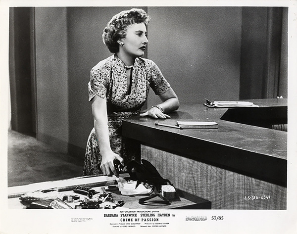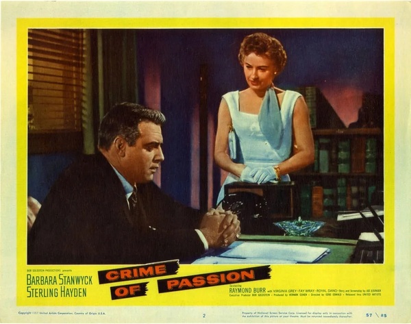 與其說[Crime of Passion]是一部正統的黑色電影,不如說它更像是一部謀殺情節劇,但它的核心人物是黑色電影的標誌性元素——危險的蛇蠍美人——由芭芭拉史坦葳飾演,她可以說是黑色電影中最重要的女性角色。