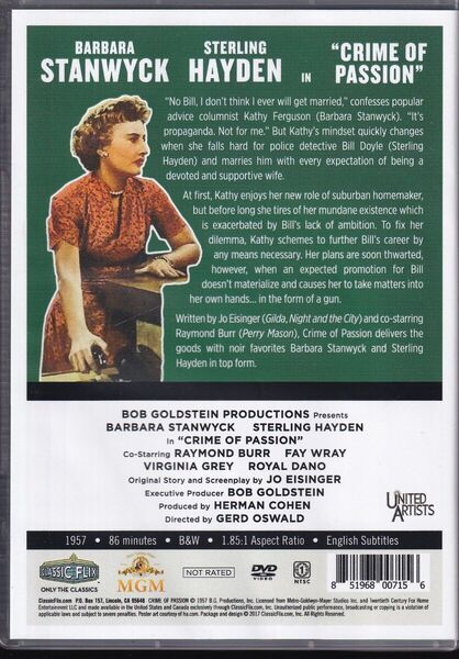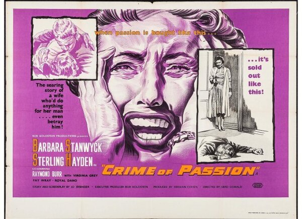 芭芭拉史坦葳主演格德Gerd Oswald於1957 年執導的嚴酷黑色電影[Crime of Passion]時年僅49 歲,講述一位成功女性的矛盾慾望。