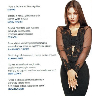 1998年3月,32歲半的智利實力歌手米莉安姆.埃南德斯(Myriam Hernández)推出第五張大碟[Todo el Amor/所有的愛](Sony Discos發行),