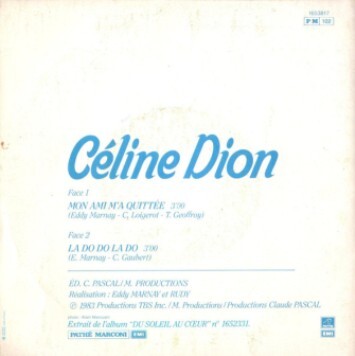 [Mon ami ma quittée]後來作為單曲在法國發行,以宣傳狄翁在法國發行的首張專輯[Du soleil au cœur]。