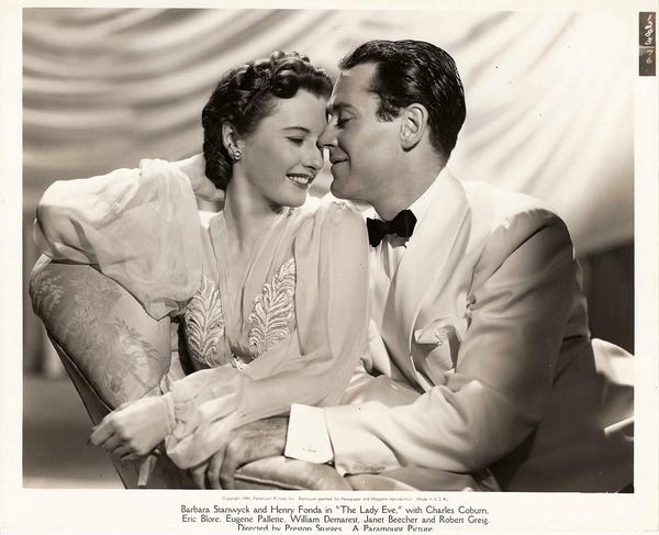 [The Lady Eve]引入新的令人愉快的喜劇團隊,芭芭拉史坦葳和亨利方達,都是作者所有鬧劇惡作劇的對象,並且大部分時間都以面無表情,或者完全驚訝的表情。