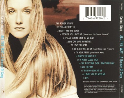 1999年秋天,31歲的加拿大超級天后席琳狄翁(Celine Dion)推出首張英文精選輯〔All The Way…A Decede of Song〕(Epic/550/Columbia唱片發行)