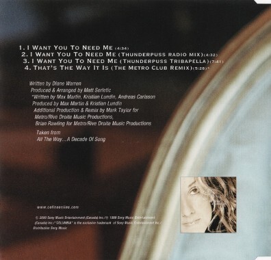 2000年4月,席琳推出大碟第四主打為〔I Want You to Need Me/我要你需要我〕,