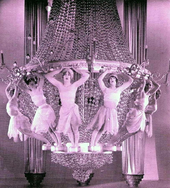 大多數歌舞表演場景都是彩色的。可以看到活生生的枝形吊燈和裸體女士,這是常見的歌舞表演的附屬品。