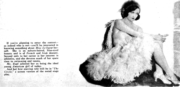 這是她首次出演特徵角色,瓊的臉幾乎無法辨認,因為製片廠尚未確定最終將在她突破性的電影[Our Dancing Daughters](1928)中塑造其特色的髮型和化妝風格。
