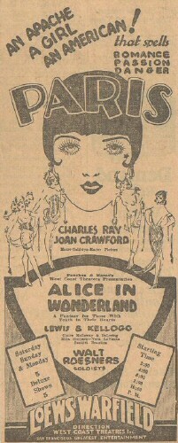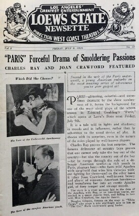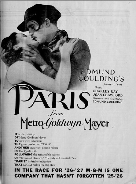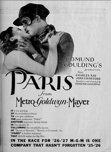 [Paris]是浪漫劇情片,由Edmund Goulding創作故事,Joe Farnham (titles)標題卡.Carey Wilson作家(未署名).