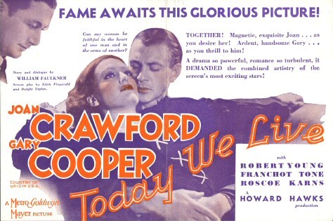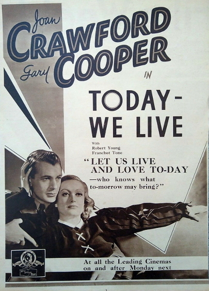 儘管[Today We Live]被譽為經典的銀幕搭檔,但卻是克勞馥和古柏唯一合作。