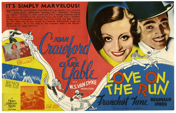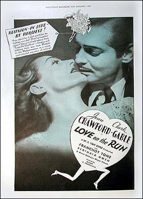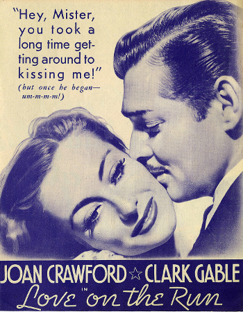 梅耶匆忙委託製作一部模仿[一夜風流]的電影,名為[Love on the Run/愛情狂奔/亡命鴛鴦],專門針對瓊克勞馥和克拉克蓋博(蓋博是[一夜風流]男主角)的才華而量身定制.