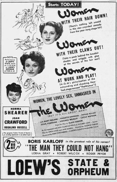 這部上流諷刺喜劇劇情根據自Clare Boothe Luce) 1936 年的同名戲劇,在百老匯上演 666 場.