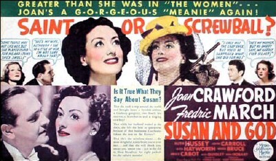 根據Rachel Crothers的諷刺劇改編的電影[Susan and God]將宗教視為膚淺的蘇珊生活中一系列時尚潮流或風格中的一種。