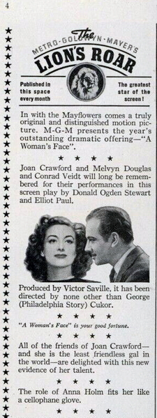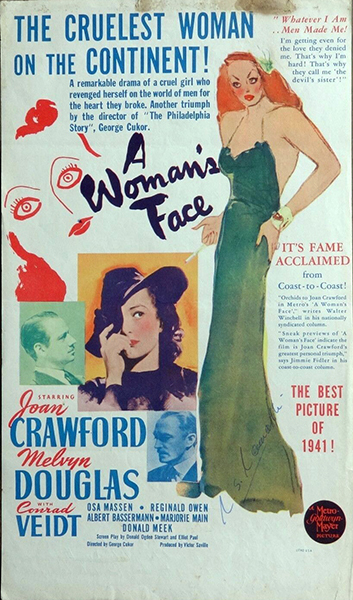 Victor Saville,現任國會大廈劇院的[A Womans Face]的製片人…他拍攝一部“直擊人心”的情節劇,並試圖給它注入心理色彩。