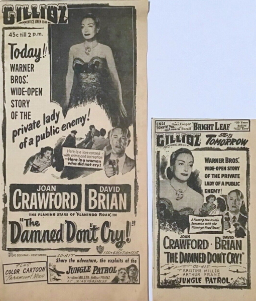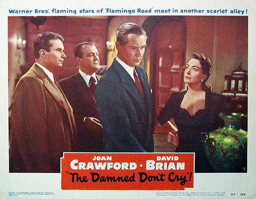 華納的新片[The Damned Dont Cry]以冗長而聳人聽聞的方式闡述犯罪不會有好結果,與黑幫跳舞的女士最終必須向提琴手支付費用這一論點。