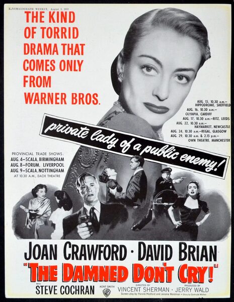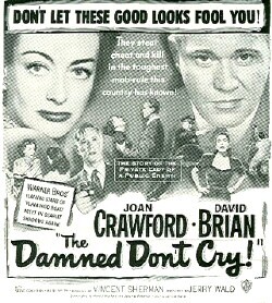 1950年瓊克勞馥主演的經典影片[The Damned Dont Cry]完美地反駁了那種認為50年代是田園牧歌式的時代——幸福的小家庭在籬笆牆後過著無憂無慮的生活,沉浸在《Leave It to Beaver》式的幻想中——的說法。