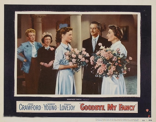 瓊克勞馥在Fay Kanin的戲劇[Goodbye, My Fancy]中巧妙地填補了Madeleine Carroll的形象,在華納影業改編的節慶季節電影版中,瓊克勞馥更加努力地將浪漫和自由主義展現得更具吸引力。