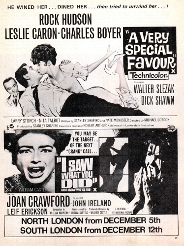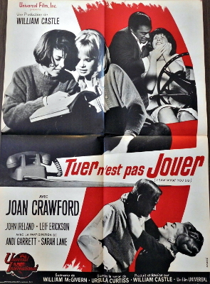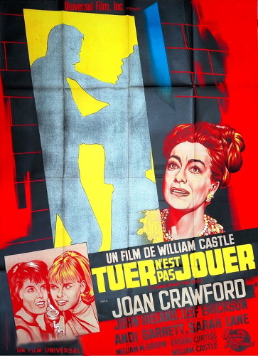 《Strait-Jacket》票房大獲成功後,William Castle和克勞馥一年後再度合作──環球的[I Saw What You Did/我看見你作了/奪魂鈴].