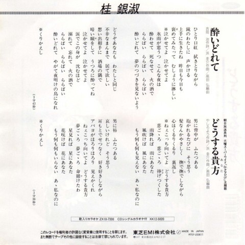 1989年4月12日,桂銀淑推出第五首單曲[酔いどれて/醉酒](東芝EMI發行),