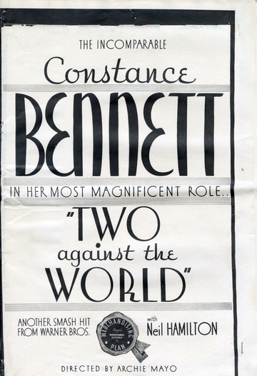 Archie Mayo執導了[Two Against the World]…前半部展現他依然強勁的幽默天賦,節奏明快的對白與演員們精湛的表演和簡潔高效的攝影相得益彰。