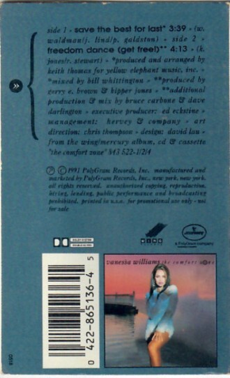1991年12月,31歲半的美國豔麗歌姬凡妮莎威廉絲(Vanessa Williams)推出第二張大碟[The Comfort Zone/舒適地帶](Wing/Mercury發行)