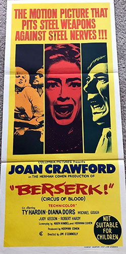 克勞馥聲稱,電影製作人想將這部電影命名為[Circus of Blood/血腥馬戲團]或[Circus of Fear/恐怖馬戲團],但她堅持要命名為[Berserk!]