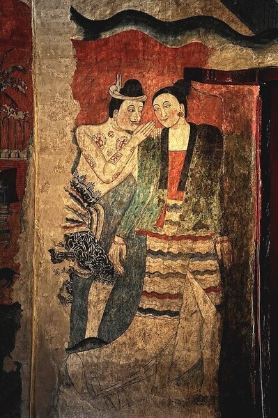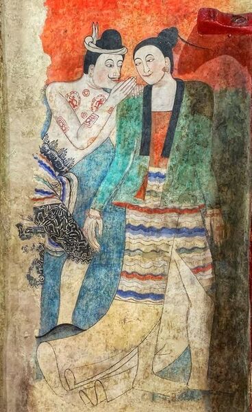 暹羅難府畫家[南布阿潘]─普明寺著名壁畫─《ปู่ม่านย่าม่าน/祖父祖母/偉大低語者/簾幕公公簾幕婆婆/耳語情侶》